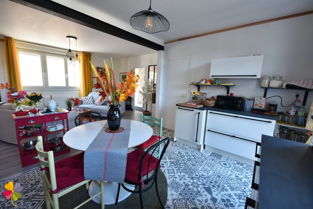 - Au rez-de-chaussée : une entrée ouvrant sur une belle pièce de vie avec cuisine aménagée et équipée, ainsi qu’un salon/séjour, et des toilettes.