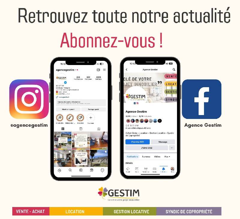 Pour être informé des nouveautés, aimez la Page Facebook et Instagram « Agence Gestim ».