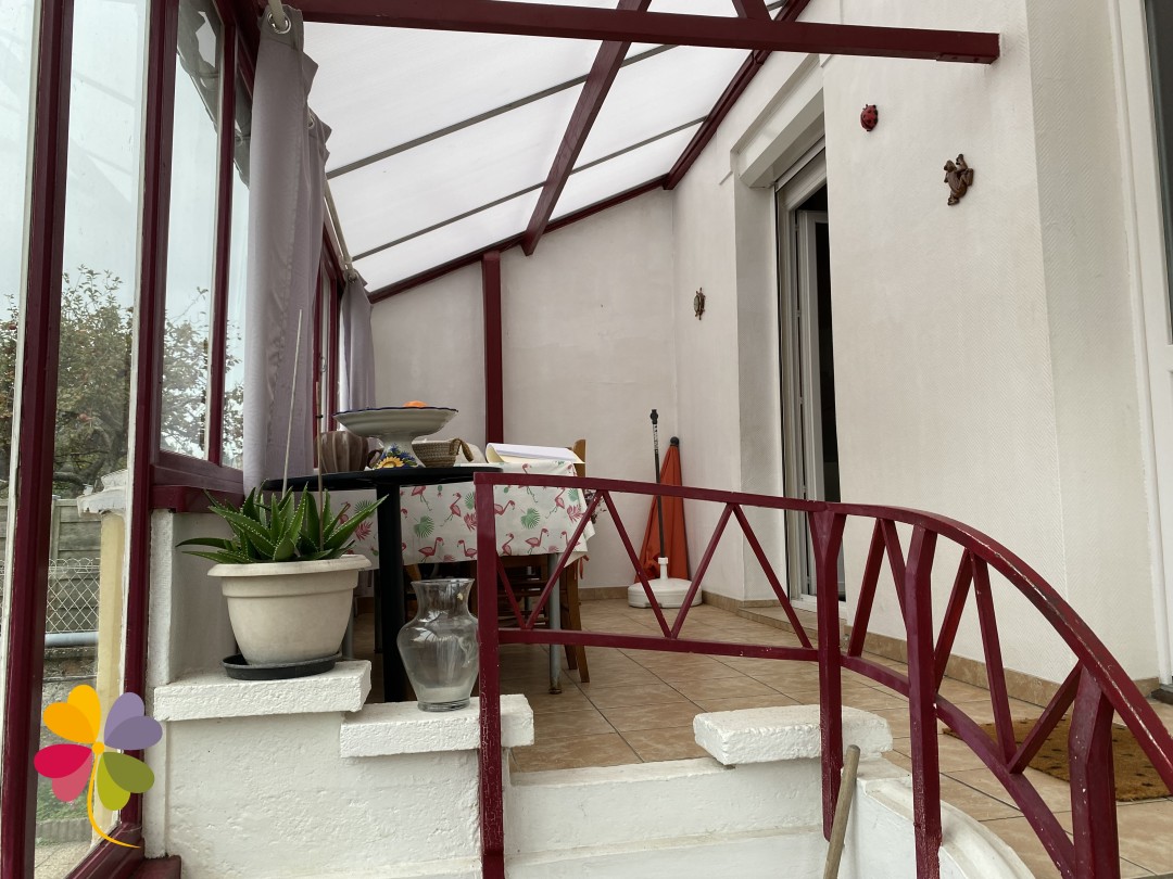 Elle dispose au rez-de-chaussée : d'une entrée, d'un séjour salon, d'une cuisine aménagée et équipée ouvrant sur une véranda, d'une buanderie, d'un toilette et d'une chambre.